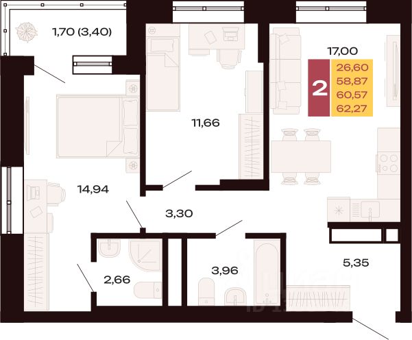 Продается Двухкомнатная квартирав Верх-Исетском районе города Екатеринбург. Квартира находится 10 на этаже, площадью 57.82 кв.м. Срок сдачи: 3 квартал 2027 года. Подробнее о жилом комплексе: Авторский квартал ''Трилогия'' — это 3 современных жилых корпуса комфорт-класса, расположенные рядом с ''Медгородком'' и ''Радуга-парком''. • Расположение: Жилой квартал ''Трилогия'' расположен в Верх-Исетском районе, недалеко от пересечения улиц - Волгоградской и Серафимы Дерябиной. • Холлы: Входные группы в комплексе организованы таким образом, чтобы каждый житель мог наслаждаться прибыванием домой. В каждом холле предусмотрены зоны отдыха с мягкими диванами, приятным освещением, живыми растениями и полки для книг. Четырехметровые потолки создают ощущение простора и света, придавая уют и комфорт. Для вашего удобства сделаны сквозные подъезды, все входы в здания организованы на уровне земли без ступенек и порогов. Дети могут безопасно выходить во внутренний двор, чтобы провести время на свежем воздухе и поиграть. • Отделка: Мы понимаем ценность вашего времени, поэтому предлагаем вам готовые квартиры с высококачественной отделкой и стильным дизайном. Вы сможете сразу заселиться и наслаждаться комфортом, не тратя усилий на ремонт или обустройство. • Двор: Закрытая территория двора с взрослыми деревьями, тернистыми аллеями и разнообразными растениями. Здесь есть места для спокойного отдыха и активных занятий: многофункциональные спортивные площадки, маршруты для родителей с колясками, уединенные уголки для чтения на свежем воздухе, и безопасные игровые зоны для детей. • Последние этажи: на последних четырех этажах ''Трилогии'' предусмотрено панорамное остекление в пол и конверторное отопление, чтобы вы могли подойти к дизайн-проекту с особым внимание и воплотить все свои мечты в жизнь. • Планировочные решения: В жилом комплексе есть варианты на любой вкус: студии, однокомнатные, двухкомнатные и трехкомнатные квартиры с грамотным распределением пространства. • Паркинг: Вам не нужно будет беспокоиться, где оставить ваш автомобиль. На территории ''Трилогии'' предусмотрен подземный отапливаемый паркинг на 154 машино-места.
