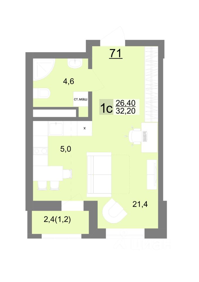 32 м² · Этаж 11 из 26