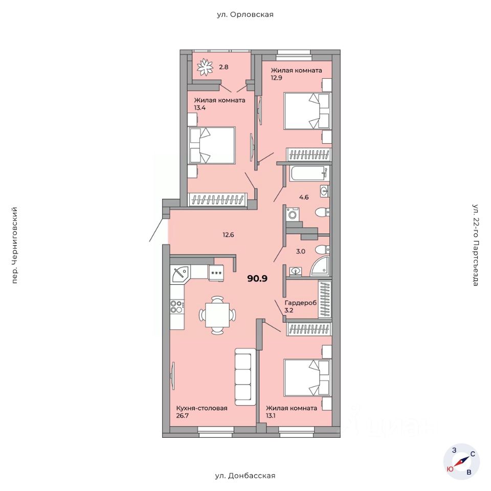 Идеальное пространство для семьи Кухня-гостиная 17,5 м²с выходом на панорамную лоджию 3,7 м²— место, где встречается вся семья. Уютное пространство для тёплых ужинов, душевных разговоров и весёлых встреч с друзьями Просторный санузел 4,9 м² с ванной — место для расслабления, а дополнительный санузел 2,0 м² гарантирует удобство для всей семьи Родительская спальня 12,1 м² станет личным уголком спокойствия. Здесь можно уединиться и расслабиться после насыщенного дня Детская комната 10,1 м² — светлая, уютная и функциональная. Достаточно места для игр, учёбы и отдыха, чтобы ребёнок чувствовал себя комфортно Прихожая 4,9 м² с выделенным местом под систему хранения поможет поддерживать порядок и избавит от необходимости искать место для верхней одежды и обуви Коридор 5,0 м² отвечает за удобную навигацию по квартире, связывая все зоны в единое, гармоничное целое Окна на две стороны наполняют квартиру светом в любое время суток, формируя гармонию и вдохновение, которые так легко ощутить