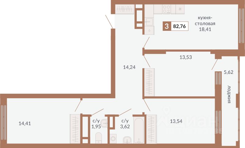 82 м² · Этаж 17 из 31