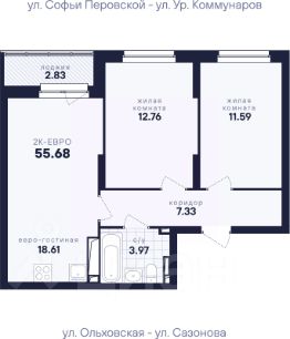 Спешите забронировать по этой цене! Период акции ограничен! Стоимость квартиры указана со скидкой, ваша экономия составит 728,385 RUB. По всем вопросам обращайтесь в офис продаж, наши менеджеры вам все расскажут! Просторная двухкомнатная квартира с предчистовой отделкой в ЖК ''Соната Парк'' на 4 этаже. Общая площадь: 55.22 кв.м., жилая: 23.16 кв.м., площадь просторной кухни-столовой: 22.16 кв.м. Угловая квартира, окна oбecпeчивaют paвнoмepнoe ocвeщeниe в тeчeниe дня. В квартире одна лоджия, один совмещенный и один раздельный санузел. Высота потолков 2.72 м. Дом монолитный, двухподъездный, переменной этажности, от 23 до 30 этажей. Квартира находится в 1-й секции высотой 30 этажей в корпусе 1. На этаже 10 квартир. В подъезде 2 пассажирских и 2 грузовых лифта. Окончание строительства - 4 квартал 2028 года. Оформление сделки по договору долевого участия. ЖК ''Соната Парк'' расположен в новом городском кластере ''Аллея Романтиков'' на Юго-Западе Екатеринбурга. Это район улиц Волгоградская Советских женщин Шаумяна Амудсена. Аллея объединяет разные кварталы застройщиков этой территории в единое целое. Чистые линии, интеллектуальная элегантность фасадов, игра света и тени это партитура, написанная архитектором. Благоустройство жилого комплекса это синтез искусства и природы. Поющие музыкальные инсталляции и поэтический променад. Оркестр растений: сирень, гортензии и яблони, чья цветущая палитра сменяется в течение года. Жизнь с готовой инфраструктурой Развитая транспортная доступность и социальная среда: уже сегодня рядом с домом детские сады, школы, парковые зоны, супермаркеты и рестораны в шаговой доступности. Технологии безопасности Для спокойствия жителей создана интеллектуальная система безопасности. Круглосуточный визуальный контроль обеспечивают профессиональная служба охраны, постоянно присутствующая на территории, и ситуационный центр. Система видеонаблюдения охватывает каждый уголок комплекса, исключая ''слепые'' зоны. Чёткое зонирование и навигация дополняют картину полного порядка. Дизайнерские подъезды Стилистика подъездов продолжает концепцию ''Соната Парка'', вдохновлённого музыкальной симфонией: сдержанный, но при этом впечатляющий дизайн соседствует с удобством и функциональностью. В подъезде вас встречает музыка, создавая особую атмосферу с первых секунд. Светлые и стильные входные группы с панорамным остеклением наполняют пространство светом, добавляя ему современной эстетики и ощущения безопасности. Аллея Романтиков Проект органично вписан в масштабный пешеходный кластер ''Аллея Романтиков'' — уникальное общегородское пространство, которое уже сегодня называют будущей альтернативой главным прогулочным улицам города. Это многофункциональный бульвар протяжённостью 1 километр, где всё создано для вдохновения и отдыха. Это ''зелёное сердце'' территории, которое объединит кварталы разных застройщиков в единую гармоничную среду. Здесь будут назначать свидания, гулять с семьёй, встречаться с друзьями и просто насл
