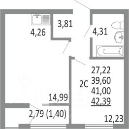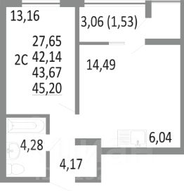 43 м2
