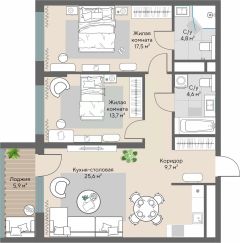 Квартира с объединенной кухней-гостиной и двумя спальнями в квартале ''На Некрасова''. Особенности планировки: угловая, холодная лоджия, мастер-спальня. ОБЪЯВЛЕНИЕ ОТ ЗАСТРОЙЩИКА. Покупка квартиры защищена банком. Двухкомнатная квартира в квартале ''На Некрасова'' это квартира с объединенной кухней-гостиной, двумя спальнями и ванной комнатой. Купить двухкомнатную квартиру выгодно напрямую от застройщика Брусника. На сдаче в квартирах ''На Некрасова'' выполнена отделка под чистовую. Межкомнатные стены выровнены и оштукатурены, на полу цементно-песчаная стяжка толщиной 55-60 мм. Установлены розетки, выключатели, все приборы учёта. Сделаны выводы под сантехнику, горизонтальная разводка отопления и разводка электрики по комнатам. Межквартирные стены трёхслойные и обеспечивают хорошую шумоизоляцию. В квартирах установлены пластиковые окна и надёжная входная сейф-дверь. Отделка под чистовую сэкономит время и сократит затраты на ремонт. Часть квартир спроектирована с тёплыми лоджиями. На открытых балконах предусмотрены корзины для кондиционеров. Квартал ''На Некрасова'' расположен в центре Екатеринбурга в границах улиц Печерская Некрасова рядом с управлением железной дороги и крупной транспортной магистралью улицей Челюскинцев. В пешей доступности сквер им. Бабыкина, одного из основателей уральской архитектурной школы, санаторий и лодочная станция. До площади 1905 года 5 минут на автомобиле. В 10 минутах ходьбы находится станция метро ''Динамо''.Дом 1 в квартале ''На Некрасова'' представляет собой полузамкнутый квартал высотой 9-17 этажей с подземным паркингом. Во внутреннем дворе, образованном массивом здания, нет уличного шума и ветра. Вход организован через декоративную арку в виде колоннады. Планировочно двор разделён на две части. Парадный партер с большим количеством стриженых растений, фонтанами, цветущими кустарниками и более ''домашняя'', уютная зона, где высажены деревья с природной формой кроны, низкорослые хвойные растения, многолетники. В центре двора две детские площадки. Одна предназначена для игр малышей, вторая представляет собой полосу препятствий с геопластикой и травяным покрытием. К площадкам примыкает белая беседка-пергола для отдыха. Здесь же размещены патио с деревянными настилами и уличной мебелью. В южной части двора организовано пространство для тихого отдыха в окружении зелени. Купить двухкомнатную квартиру в Екатеринбурге выгодно с использованием программ покупки и сервисов от компании Брусника:- бесплатный юридический и ипотечный сервис от специалистов застройщика,- ипотека со сниженной ставкой по госпрограмме,- беспроцентная рассрочка,- обмен вторичной квартиры на новую/Получить одобрение ипотеки или рассрочку, а также осуществить обмен квартир можно онлайн. Запишитесь на онлайн презентацию по телефону или на сайте. квартиры в нашей базе: ЕКБ25806. #ZZcdb9