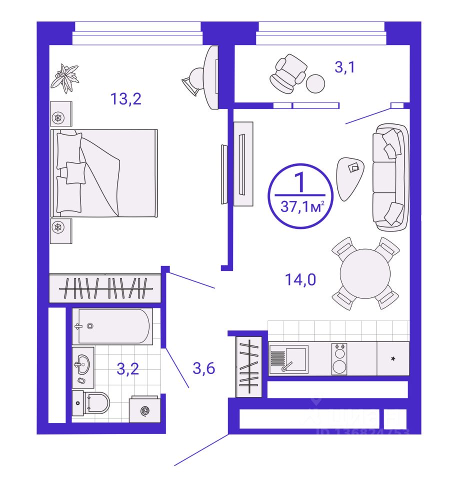 1-к, Николая Кичигина, 10/2 стр.