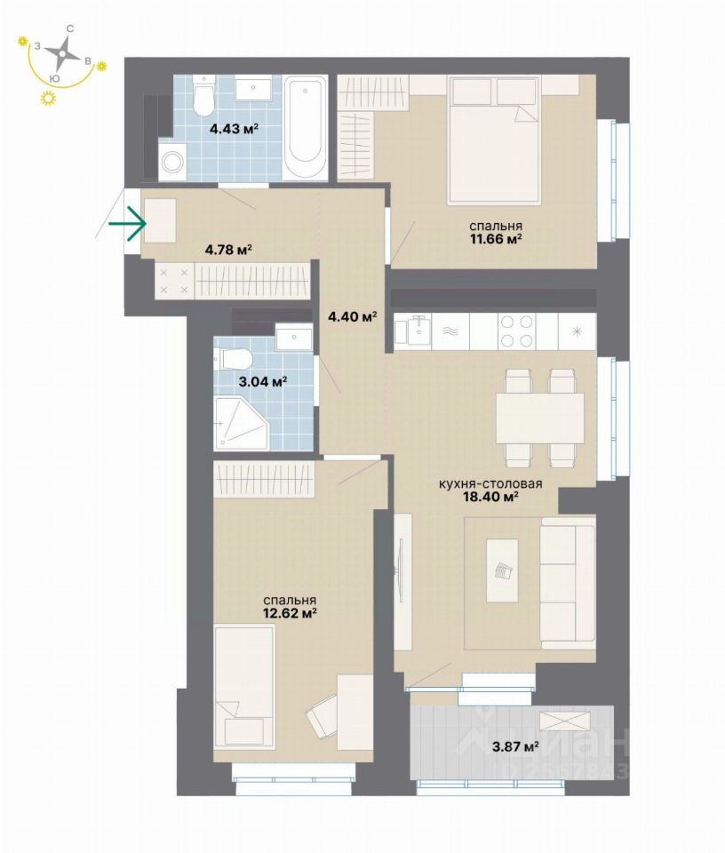 43 м² · Этаж 10 из 26