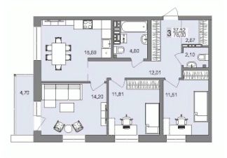 Продаётся 3-комнатная квартира в строящемся доме (Дом 1), срок сдачи: IV-кв. 2027, общей площадью 88.12 кв.м., на 13 этаже. Новый жилой комплекс ''GRAFIT'' от застройщика ''Форум-групп'' расположен по адресу: г. Екатеринбург, улица Победы.