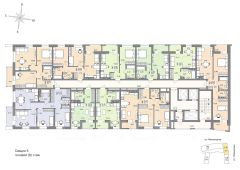 Квартира 105 в подъезде 1. Квартал, в котором рациональность соединяется с творчеством, а архитектурная выразительность — с современными технологиями комфорта. Эффективные планировки, двор-сад без машин, двухуровневая подземная парковка и коммерческие помещения на первых этажах создают функциональную основу комплекса. Статус подчеркивает парадный вестибюль с ресепшн, а художественные акценты в общественных пространствах формируют атмосферу, вдохновляющую на новые идеи.
