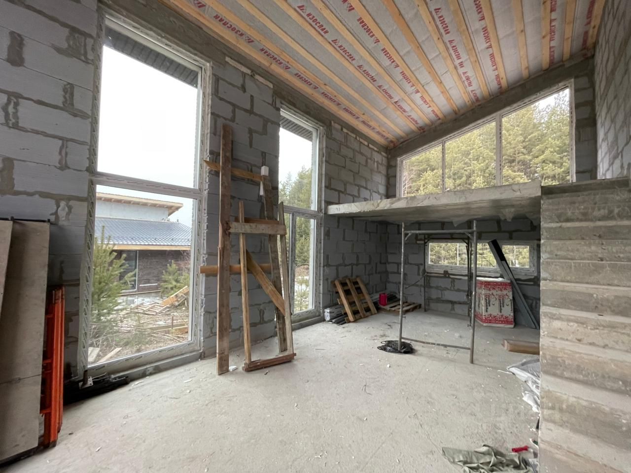 Дом располагается в деревне Ключи, КП ''Лесные ключи''. Участок граничит с лесом с вековыми соснами, есть прямой выход в лес с участка. Дом выполнен по индивидуальному проекту компании 100 м2. Разделен на две части - зона кухни-гостиной: имеет высоту потолков от 5 до 6 метров, панорамное остекление, и антресоль из монолитного железобетона с монолитной лестницей. Жилая зона: потолки от 2,4 до 4 метров, 3 спальни, одна спальня (мастер спальня) имеет собственный санузел с панорамным окном и собственную гардеробную. Есть отдельная котельная, отдельный санузел, прихожая и гардеробная, просторный коридор с высоким потолком. В доме: система водных теплых полов во всех помещениях, электрокотел, электроводонагреватель, выполнена разводка электрики, ХГВС и Канализации. Дом продается в комплектации ''под чистовую'', будет выполнена машинная штукатурка внутренних стен, полусухая стяжка пола. Вентиляция - Установлена многоканальная вытяжная установка VAKIO, с забором воздуха из всех помещений, в жилые помещения предусмотрена подача свежего воздуха через стендовые плиточные клапаны. Канализация - установлен энергонезависимый септик Элемент Стандарт 4. Продажа от застройщика, возможна льготная ипотека.