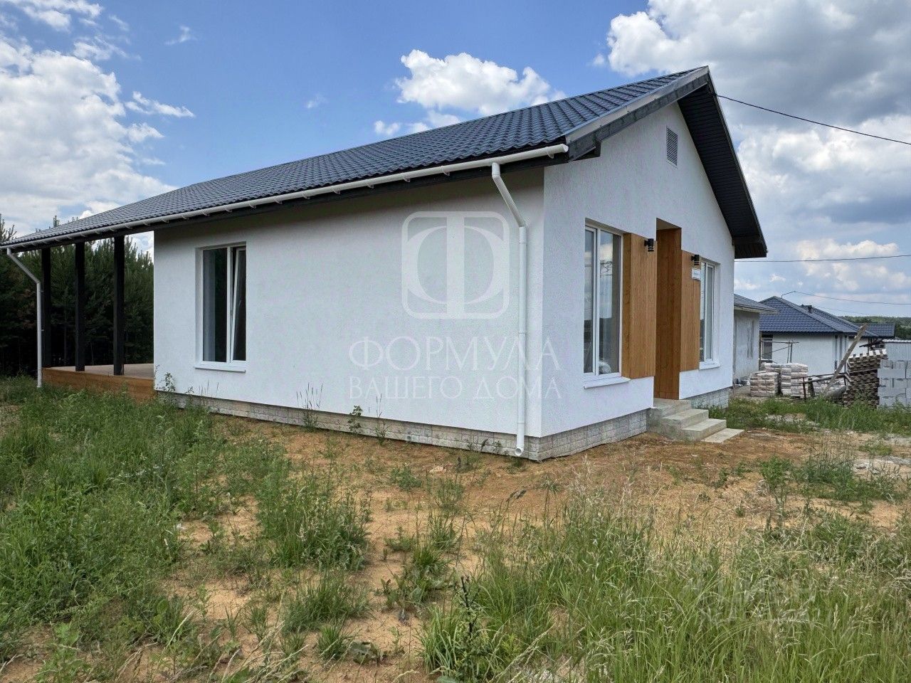 Продается дом 72 метров квадратных с двумя спальнями,с двумя сан.узлами, просторной гостиной с кухней, с теплой прихожей по каркасно-щитовой технологии. Фундамент - утепленная шведская плита (УШП) 300 мм. Каркас - обвязка из сосны камерной сушки, базальтовый утеплитель 200 мм, OSB, гидроизоляционная мембрана снаружи и паропроницаемая внутри. Фасад - декоративная штукатурка. Окна - пластиковый профиль 70 мм с 2-х камерным стеклопакетом. Кровля - металлочерепица с минеральным утеплителем 300 мм. Отопление - водяной теплый пол с электрическим котлом 9кВт. Произведена полная разводка электрики и монтаж перегородок. Стяжка и гипсокартон закуплены. Возможно сделать под конкретного покупателя чистовую отделку по отдельной смете. Площадь участка 8 соток в подарок Септик на 4 кольца, скважина 40 метров, электричество 15кВт. Дренаж всего контура дома и участка. Гибкая отмостка Плантер с декорированием речной галькой. Дорожки из бетонной плитки, гальки и скалы. Забор из габионов с рейкой. Фундамент под баню.