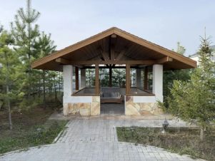 Современней коттедж 2 этажа , первый этаж студия зал с открытой кухней и островом, встроенная бытовая техника премиум класса . Отдельно профессиональная кухня с оборудованием и холодильной , морозильной камерой и моечной . Два сан узла на первом этаже , гардеробная , котельная , отдельный вход со стороны котельной . Второй этаж 5 комнат , туалет , ванна , душевая кабина, гардеробная .Видеонаблюдение на первом этаже и по всему участку . Большая парковка , на участке посажены голубые ели , дуб и плодовые деревья . Отдельно стоящая двухэтажная деревянная баня .