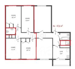 Объект N 194676. Предлагаются к продаже две комнаты в четырехкомнатной квартире. В результате незначительной перепланировки получилась полноценная двухкомнатная квартира со своим санузлом. Комнаты теплые, светлые. В соседях проживает одна семья. Рядом с домом расположены магазины и остановки общественного транспорта.