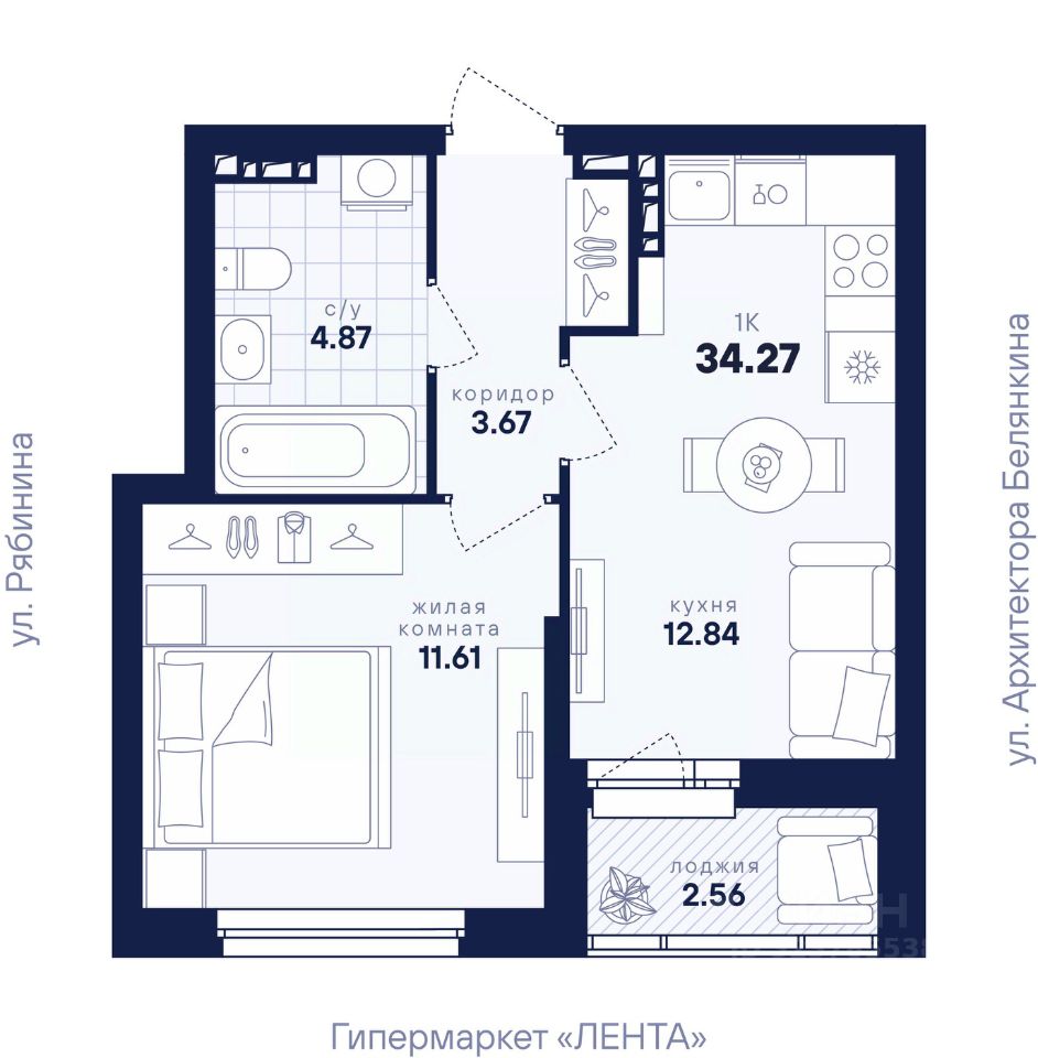 1-к, Рябинина, 1