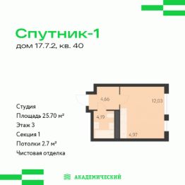 Продаётся квартира площадью 25.8 м2 в жилом комплексе ''Эхо леса''. Квартира находится на 5 этаже, жилая площадь квартиры 13.21 м2, площадь кухни-ниши — 5.29 м2. Срок сдачи — I кв. 2028 Жилой комплекс ''Эхо леса'' — это:- дом в эко-стиле- двор с выходом в лесопарк - лаконичная архитектура- развитая инфраструктура вокруг квартала Инфраструктура В окружении проекта — вся необходимая инфраструктура: детские сады, школы, спортивный комплекс, продуктовые магазины, аптеки, кофейни, рестораны и салоны красоты. БлагоустройствоКонцепция двора-парка продолжает тему леса. Ландшафт с продуманным всесезонным озеленением дополняют акценты: сухой ручей из камней, столы и навесы из натурального дерева, эко-тропы, фонтан и променад. Для взрослых предусмотрены пешеходные и велодорожки, для детей — игровые площадки для разных возрастов. Архитектура Переменная высота секций создаёт выразительный архитектурный облик. На фасадах — игра контрастных, при этом природных оттенков. Динамики зданию придают текстуры материалов: фактурной штукатурки и клинкерного кирпича. Лобби Интерьер в холле продолжает концепцию квартала и выполнен в эко стиле. В отделке используются элементы природных материалов с изображениями листвы и деревьев. ПаркингТёплый подземный паркинг организован как единое пространство с собственным дизайном. Кладовые Индивидуальные помещения на техническом этаже — способ сохранить пространство в квартире. Попасть в кладовые можно на лифте. Планировки В продуманных планировках выделены тихие и шумные зоны. Приватные спальни и кабинеты спрятаны от маршрутов домашнего движения, а кухни-гостиные с барной стойкой вместо стены — всегда готовы к семейным праздникам. Из окон квартир открываются живописные виды на лес.