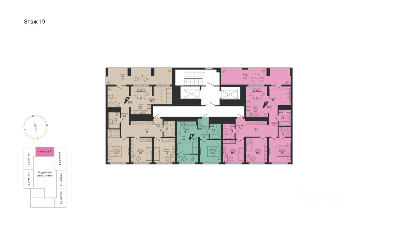 98 м² · Этаж 19 из 31