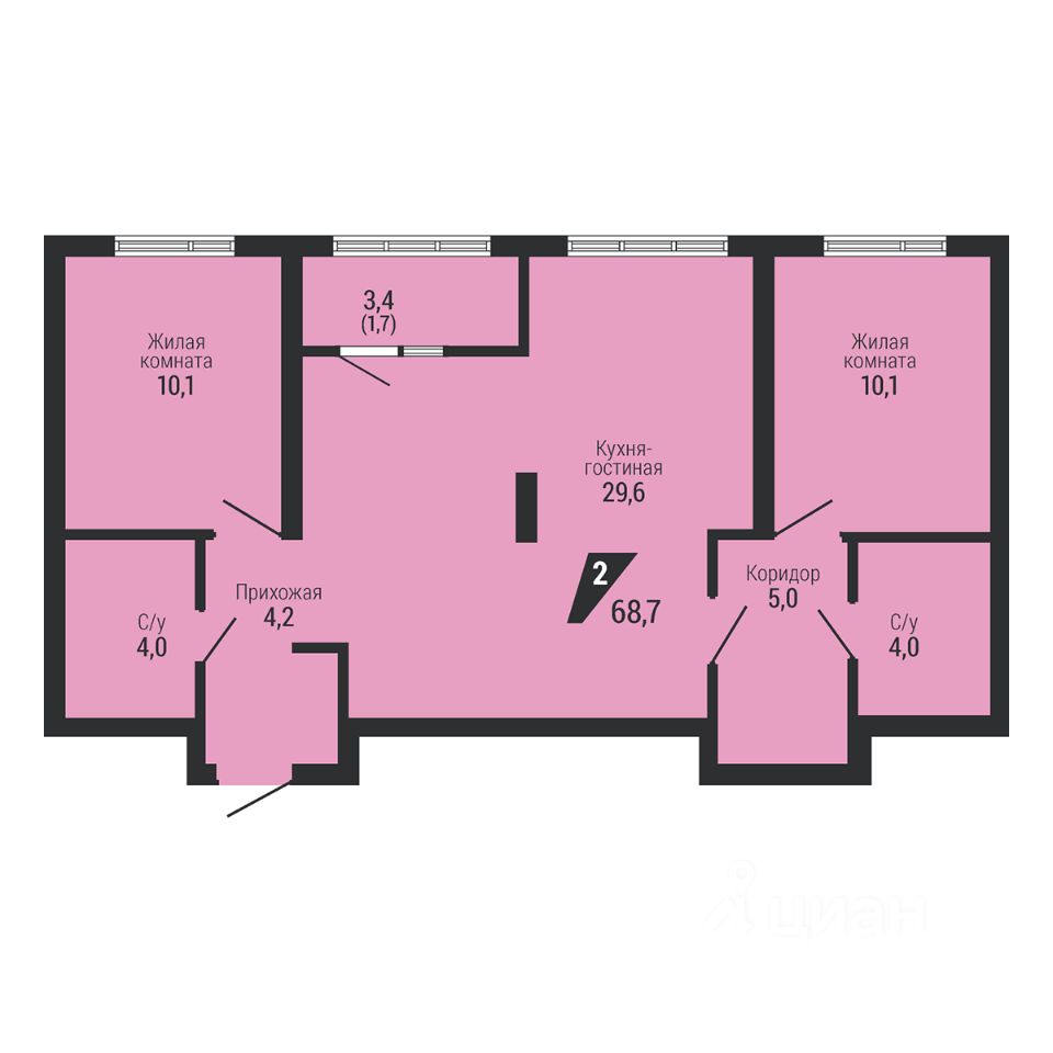 70 м² · Этаж 2 из 22
