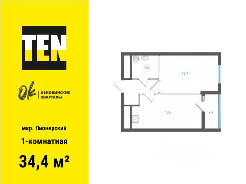Квартира в ЖК ''ОК: Премиум'' в Пионерском микрорайоне от застройщика TEN девелопмент! Ключи во 2 квартале 2027 года. ЖК ''ОК: Премиум'' - это продолжение квартала, украсившего локацию Основинского парка, включающего 5 домов высотой от 14 до 31 этажей. Спокойный архитектурный облик, классические линии и формы, гармоничное сочетание цветовых решений все подчеркивает респектабельный характер второй очереди жилого комплекса ''Основинские кварталы''. Вдохновение природой Здесь не просто ландшафтное озеленение, а целые коллекции цветов и деревьев - различные сорта яблонь, сирени, гортензий и других растений - настоящий питомник в собственном дворе! Двор закрыт от машин и посторонних, при этом учтены интересы всех жителей как маленьких, так и взрослых. Разнообразные динамичные площадки для игр, ворк-аут зоны, амфитеатр, площадка для йоги не только созерцать, но и наслаждаться активным отдыхом! Контроль доступа, видеонаблюдение и круглосуточная охрана обеспечат безопасность для себя и близких. Спокойствие и респектабельность Входные группы прозрачные и расположены на уровне тротуара, чтобы было удобно завозить коляску или велосипед. Дизайн холлов выполнен в классическом выдержанном стиле. Для удобства жителей здесь есть мягкие зоны, колясочная и лапомойка, для автолюбителей - подземный паркинг. Свобода без ограничений Разнообразие планировочных решений позволит воплотить любые идеи и желания: насладиться видами с собственной террасы, обустроить второй уровень с потолком под 3,5 м, реализовать самые смелые дизайнерские решения. Отделка под чистовую. В санузле — монолитный потолок, на полу — гидроизоляция и стяжка, стены оштукатурены. В одном санузле установлены унитаз и раковина. В остальных помещениях потолок — монолит, на полу — стяжка, стены оштукатурены. Выгодные условия оплаты: - акционные предложения - ипотека от ведущих банков - рассрочка от застройщика - трейд-ин Звоните или оставляйте заявку, чтобы узнать больше и забронировать квартиру!