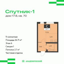 Продаётся квартира площадью 26 м2 в жилом комплексе ''Эхо леса''. Квартира находится на 8 этаже, жилая площадь квартиры 13.35 м2, площадь кухни-ниши — 5.29 м2. Срок сдачи — I кв. 2028 Жилой комплекс ''Эхо леса'' — это:- дом в эко-стиле- двор с выходом в лесопарк - лаконичная архитектура- развитая инфраструктура вокруг квартала Инфраструктура В окружении проекта — вся необходимая инфраструктура: детские сады, школы, спортивный комплекс, продуктовые магазины, аптеки, кофейни, рестораны и салоны красоты. БлагоустройствоКонцепция двора-парка продолжает тему леса. Ландшафт с продуманным всесезонным озеленением дополняют акценты: сухой ручей из камней, столы и навесы из натурального дерева, эко-тропы, фонтан и променад. Для взрослых предусмотрены пешеходные и велодорожки, для детей — игровые площадки для разных возрастов. Архитектура Переменная высота секций создаёт выразительный архитектурный облик. На фасадах — игра контрастных, при этом природных оттенков. Динамики зданию придают текстуры материалов: фактурной штукатурки и клинкерного кирпича. Лобби Интерьер в холле продолжает концепцию квартала и выполнен в эко стиле. В отделке используются элементы природных материалов с изображениями листвы и деревьев. ПаркингТёплый подземный паркинг организован как единое пространство с собственным дизайном. Кладовые Индивидуальные помещения на техническом этаже — способ сохранить пространство в квартире. Попасть в кладовые можно на лифте. Планировки В продуманных планировках выделены тихие и шумные зоны. Приватные спальни и кабинеты спрятаны от маршрутов домашнего движения, а кухни-гостиные с барной стойкой вместо стены — всегда готовы к семейным праздникам. Из окон квартир открываются живописные виды на лес.