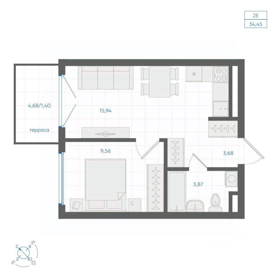 34 м² · Этаж 21 из 25