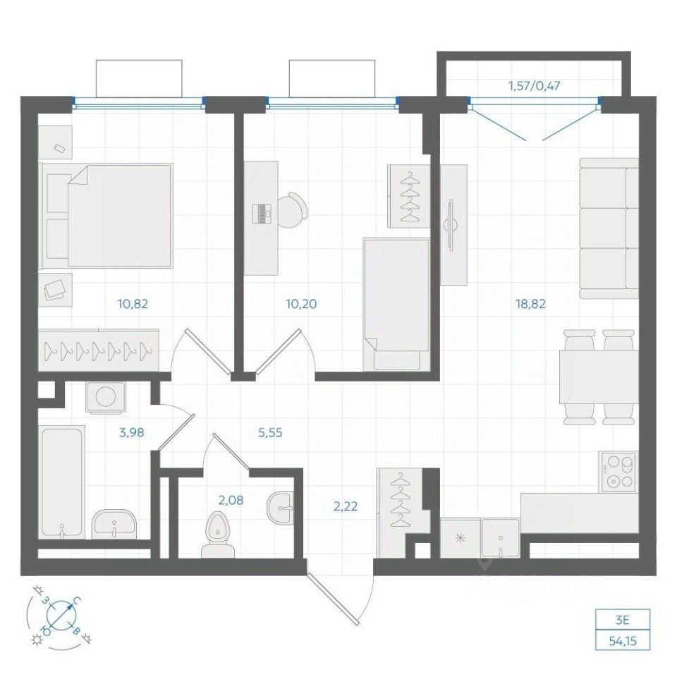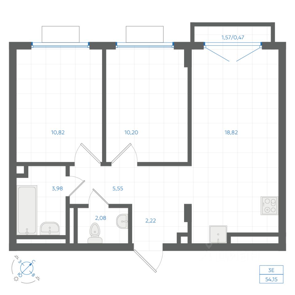 55 м² · Этаж 12 из 31