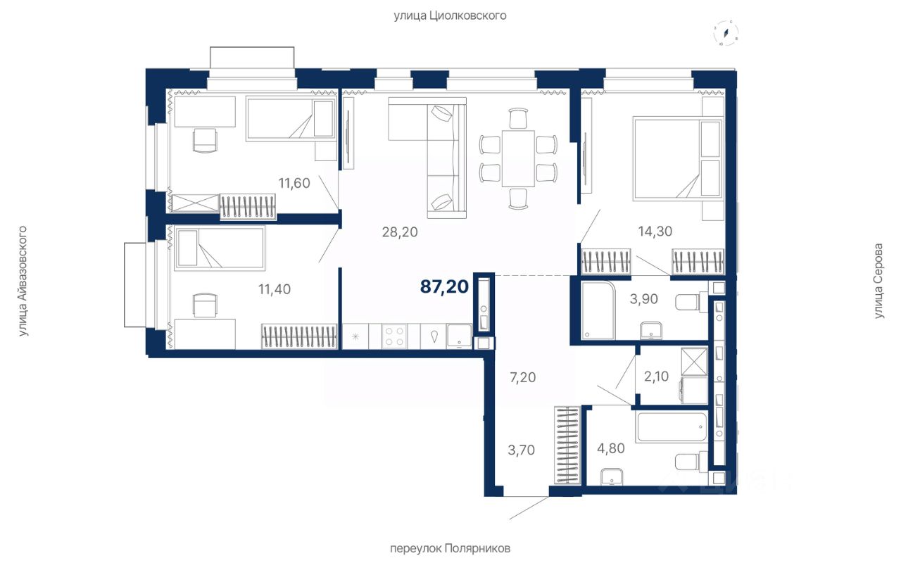 87 м² · Этаж 22 из 29