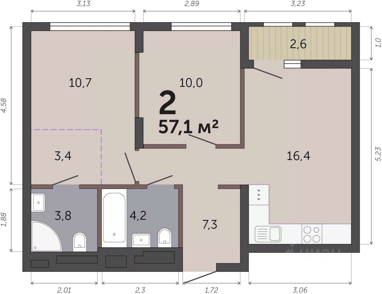 55 м² · Этаж 2 из 7