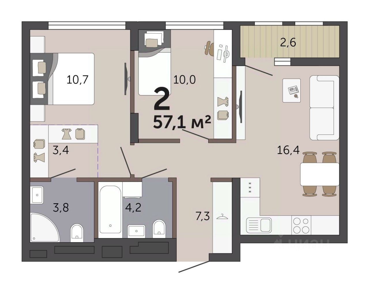57 м² · Этаж 5 из 19