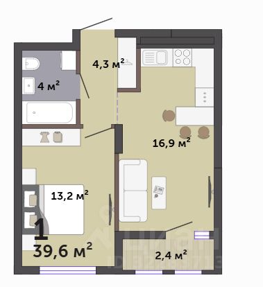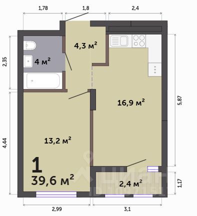34 м² · Этаж 9 из 16