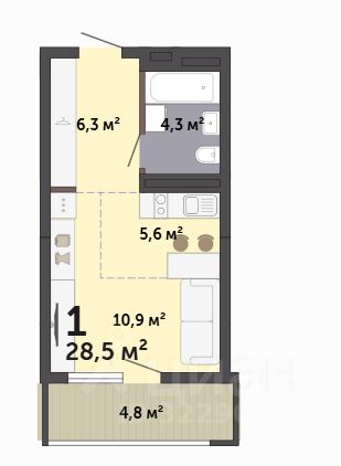 28 м² · Этаж 6 из 19