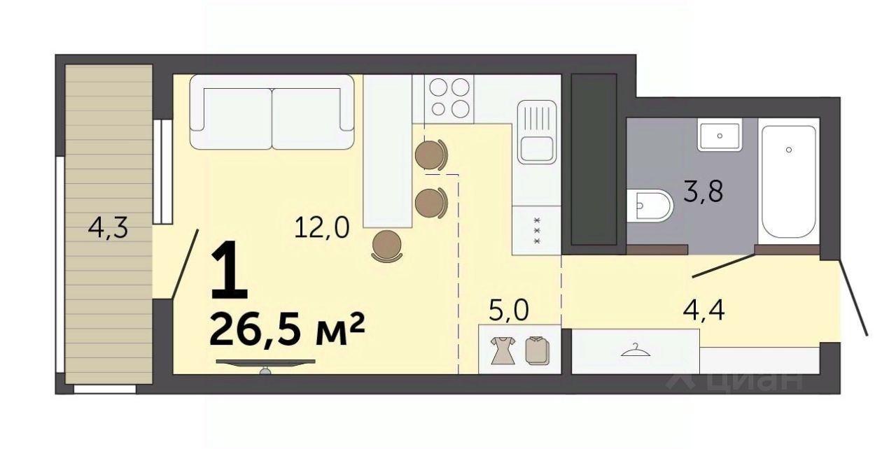 26 м² · Этаж 6 из 19