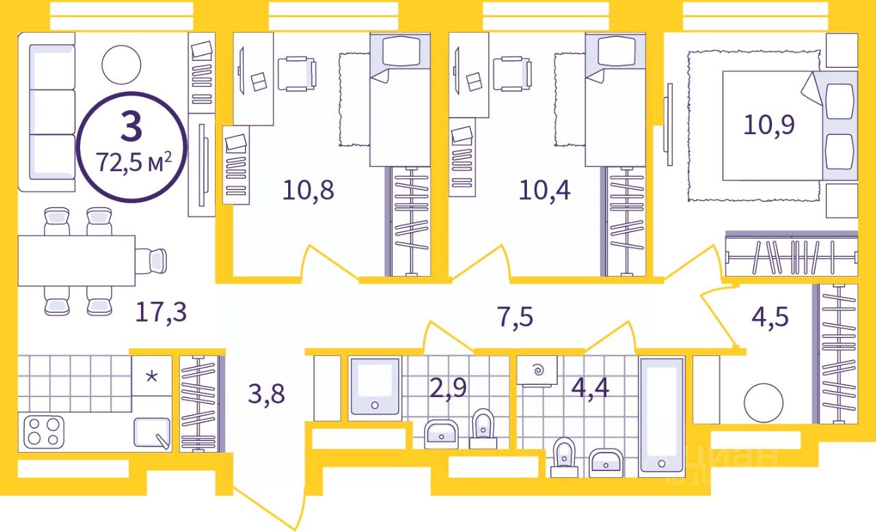 Трехкомнатные