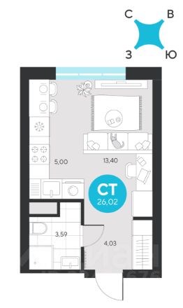 Продаётся квартира площадью 26.02 м2 в жилом комплексе ''Эхо леса''. Квартира находится на 20 этаже, жилая площадь квартиры 13.4 м2, площадь кухни-ниши — 5 м2. Срок сдачи — I кв. 2028 Жилой комплекс ''Эхо леса'' — это:- дом в эко-стиле- двор с выходом в лесопарк - лаконичная архитектура- развитая инфраструктура вокруг квартала Инфраструктура В окружении проекта — вся необходимая инфраструктура: детские сады, школы, спортивный комплекс, продуктовые магазины, аптеки, кофейни, рестораны и салоны красоты. БлагоустройствоКонцепция двора-парка продолжает тему леса. Ландшафт с продуманным всесезонным озеленением дополняют акценты: сухой ручей из камней, столы и навесы из натурального дерева, эко-тропы, фонтан и променад. Для взрослых предусмотрены пешеходные и велодорожки, для детей — игровые площадки для разных возрастов. Архитектура Переменная высота секций создаёт выразительный архитектурный облик. На фасадах — игра контрастных, при этом природных оттенков. Динамики зданию придают текстуры материалов: фактурной штукатурки и клинкерного кирпича. Лобби Интерьер в холле продолжает концепцию квартала и выполнен в эко стиле. В отделке используются элементы природных материалов с изображениями листвы и деревьев. ПаркингТёплый подземный паркинг организован как единое пространство с собственным дизайном. Кладовые Индивидуальные помещения на техническом этаже — способ сохранить пространство в квартире. Попасть в кладовые можно на лифте. Планировки В продуманных планировках выделены тихие и шумные зоны. Приватные спальни и кабинеты спрятаны от маршрутов домашнего движения, а кухни-гостиные с барной стойкой вместо стены — всегда готовы к семейным праздникам. Из окон квартир открываются живописные виды на лес.