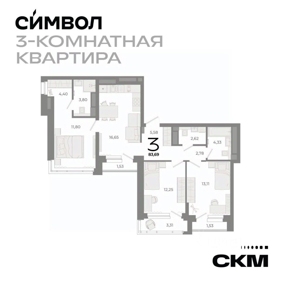 83 м² · Этаж 16 из 25