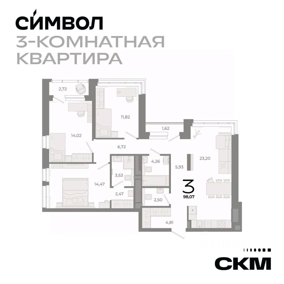 Символ - дом бизнес-класса со своей внутренней философией. Дом находится в районе со своей историей и развитой инфраструктурой в центральной части Екатеринбурга. Из окон открываются уникальные панорамные виды на город. Для удобства и комфорта жителей на этажах расположено небольшое количество квартир от 2 до 6 Приватное пространство, закрытое от посторонних. Система контроля доступа на территорию и повышенный уровень видеонаблюдения. Круглосуточная охрана. Двор без машин. В доме будет своя собственная сервисная компания, которая будет не просто обслуживать дом, а заботиться о благополучии жителей Запоминающийся образ дому придает каскадная архитектура. Фасады выполнены в светлых сдержанных тонах. Увеличенные окна создают ощущение легкости и свободы. Струящиеся вверх линии добавляют воздушности. Неповторимая индивидуальность формируют внешний облик дома бизнес-класса Внутренний двор атмосферное пространство со строгими очертаниями и лаконичными формами. Пространство зонировано: фонтан, зона для пикника, амфитеатр, лаунж-зона с гамаками и лежаками, детские площадки для всех возрастов, пространства с навесами для родителей, зона воркаут со столом для настольного тенниса, велопарковка. Тихие уголки отделены от территории для активностей зелеными ширмами. Жители дополнительно смогут отдохнуть на общей открытой террасе на высоте Рядом с домом лучшие зеленые парки с извилистыми аллеями для прогулок, водоемом и площадками для спортивных активностей. Вблизи не только детские сады и школы, но и образовательный центр ''Золотое сечение'' и Кембриджская школа английского языка. Для больших побед с самого детства Институт физической культуры и училище олимпийского резерва. Современные Академия единоборств РМК, падел-арена и самый крупный в Екатеринбурге скейт-парк.