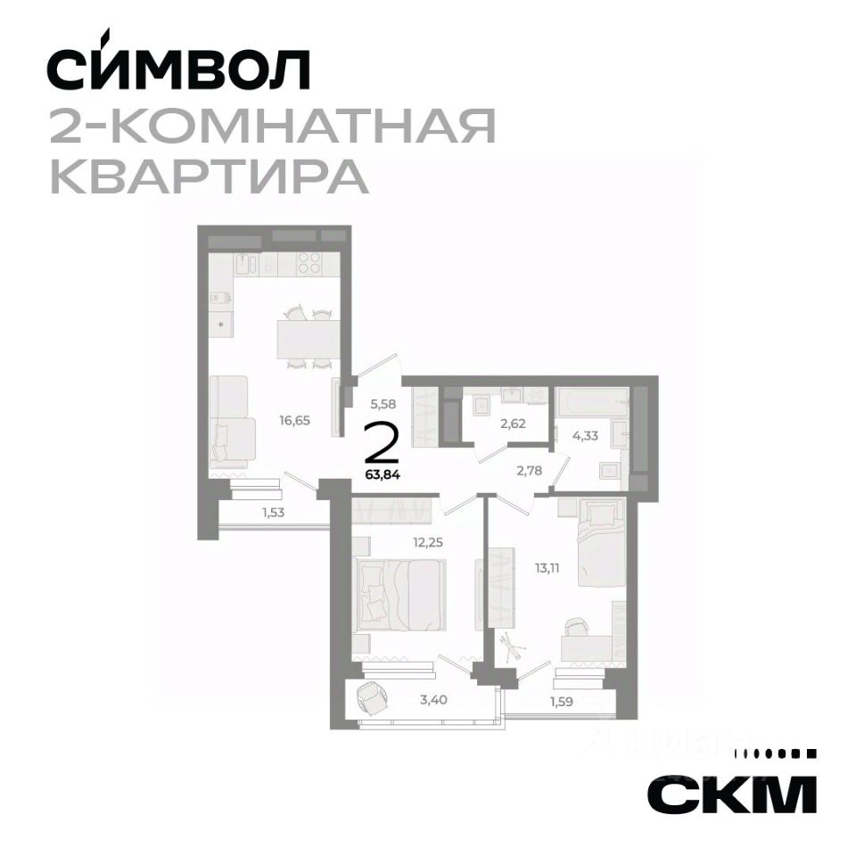 63 м² · Этаж 11 из 25