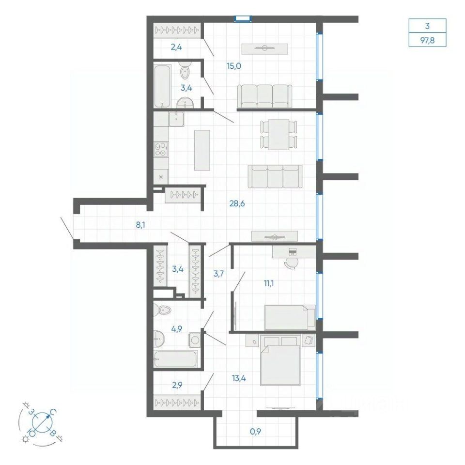 96 м² · Этаж 28 из 30