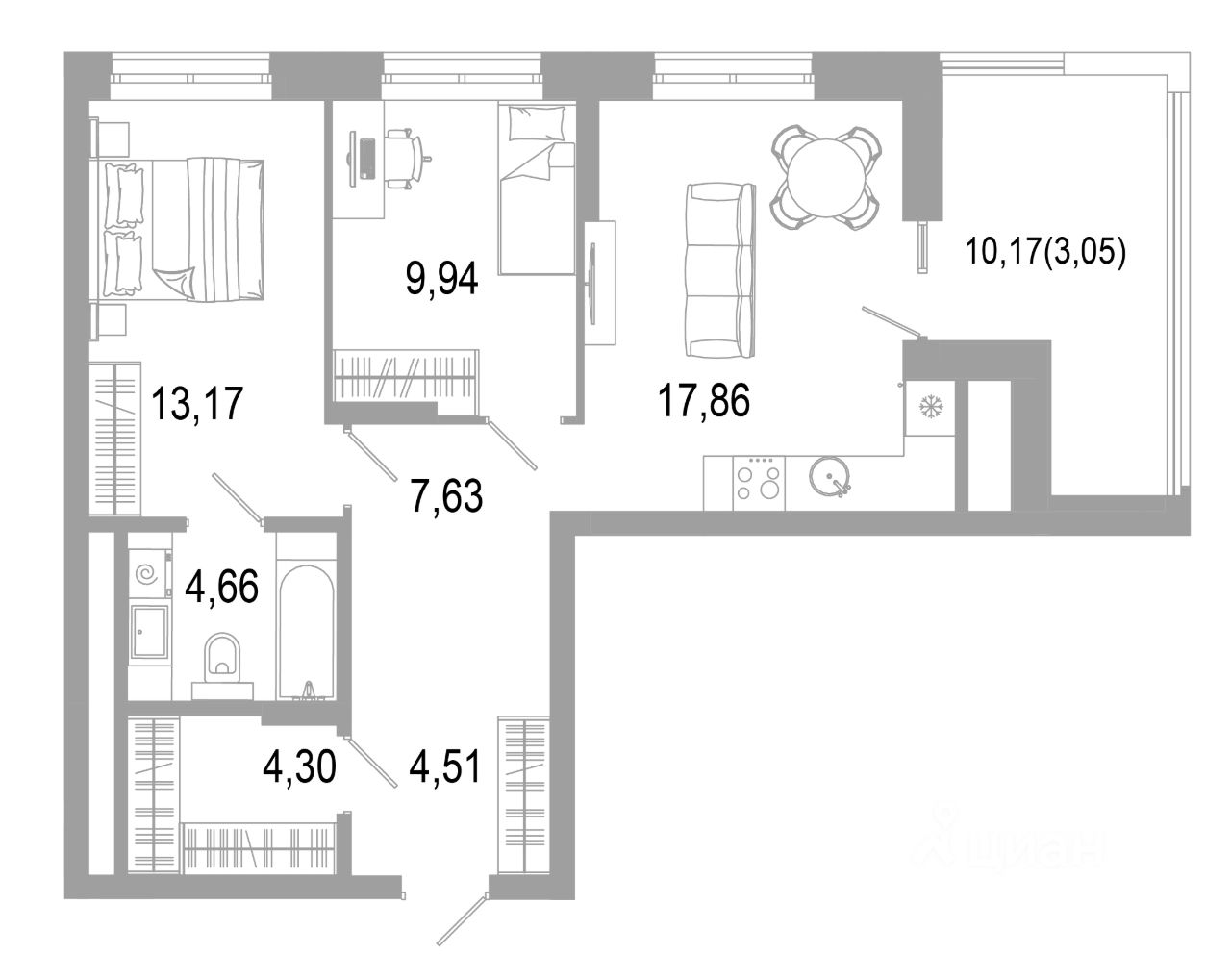 43 м² · Этаж 7 из 13