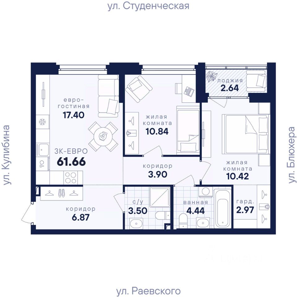 61 м² · Этаж 21 из 25