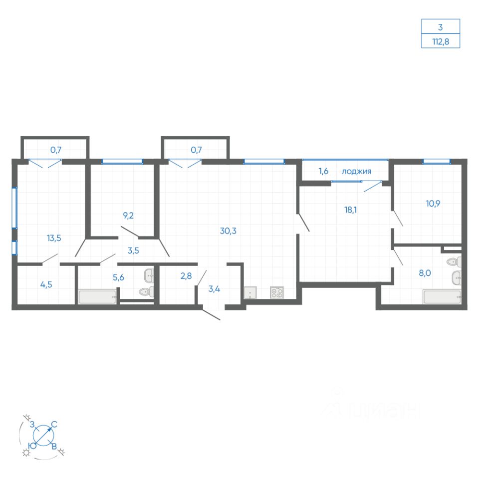 Трехкомнатные