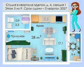 Продаётся квартира-студия в строящемся квартале ''Депо'' (переуступка от физ. лица, застройщик ''Брусника'').- Адрес: ЖК ''Депо'', дом 4, секция 1. Микрорайон ''Старая Сортировка'', в границах улиц Таватуйской, Сортировочной и Пехотинцев.- Этаж: 5 из 9.- Общая площадь: 28 кв.м., включая балкон 3.4 кв.м.- Ориентация: окна на юго-восток, хорошая степень освещённости солнечным светом. - Дом монолитный (прочный каркас из мощных бетонных стен и колонн).- Срок сдачи (по проекту): 2 квартал 2027 года.О квартире:Отделка (предчистовая): все грязные, пыльные и шумные работы уже выполнены. Вы получаете ''чистый лист'', готовый к финишному ремонту и воплощению дизайнерских задумок.- Стены выровнены и оштукатурены.- На полу - цементно-песчаная стяжка с шумоизоляцией из каменной ваты.- Потолок (высота - 2,7 метра): монолитная железобетонная плита, залитая на весь этаж. Такая технология полностью исключает риск протечек от соседей сверху и появления трещин.- Окно - двухкамерный стеклопакет с пятикамерным профилем.- Установлены современные радиаторы отопления с терморегуляторами. Подвод труб к ним скрыт в стяжке пола с выводом от стены (эффект тёплого пола).- В санузле выполнена обмазочная гидроизоляция пола и стен для предотвращения протечек.- Полная разводка электрики: установлен щиток, розетки, выключатели.- Приборы учёта электроэнергии, расхода воды и тепла подключены к автоматизированной системе, которая самостоятельно передаёт показания в управляющую компанию для расчётов.- Заведена линия для трубки домофона (с поддержкой видео) и интернет-кабель в сервисных нишах.- Балкон - открытый, с металлическим ограждением высотой от 1,2 м. Выход на него осуществляется через дверь с остеклением в пол.Жилой комплекс ''Депо'' - это не просто дом, а продуманная среда для жизни:- Комфортный формат: Закрытые безопасные дворы без машин (детские площадки, зоны для пикников и воркаута).- Богатая инфраструктура: В пешей доступности (до 15 минут) - 5 школ, техникум, детские сады, супермаркеты, ТЦ ''Таганская Слобода'', поликлиники, парки. До остановки автобуса - 7 минут пешком.- Полезные первые этажи: В доме запланированы кафе, магазины, аптеки, салоны красоты с отдельными входами- Уникальное благоустройство: Ландшафтный дизайн с редкими растениями (более 70% территории отдано под озеленение), ''сухой'' фонтан (струи воды бьют, как будто из-под земли, словно маленькие гейзеры).- Комфорт и сервис: Просторные бесшумные лифты, подъезды с зонами отдыха. Собственный Соседский центр для работы, учёбы и мероприятий.- Паркинг и кладовые: Подземный паркинг с удобной навигацией. Также имеются кладовые помещения для хранения сезонных вещей.Транспортная доступность:- Улицы Халтурина и Бебеля обеспечивают быстрый выезд на основные магистрали.- На машине до центра Екатеринбурга - около 25 минут.- Рядом с кварталом - трамвайные линии и автобусные остановки.Не упустите свой шанс!ID объекта в нашей базе: 6687