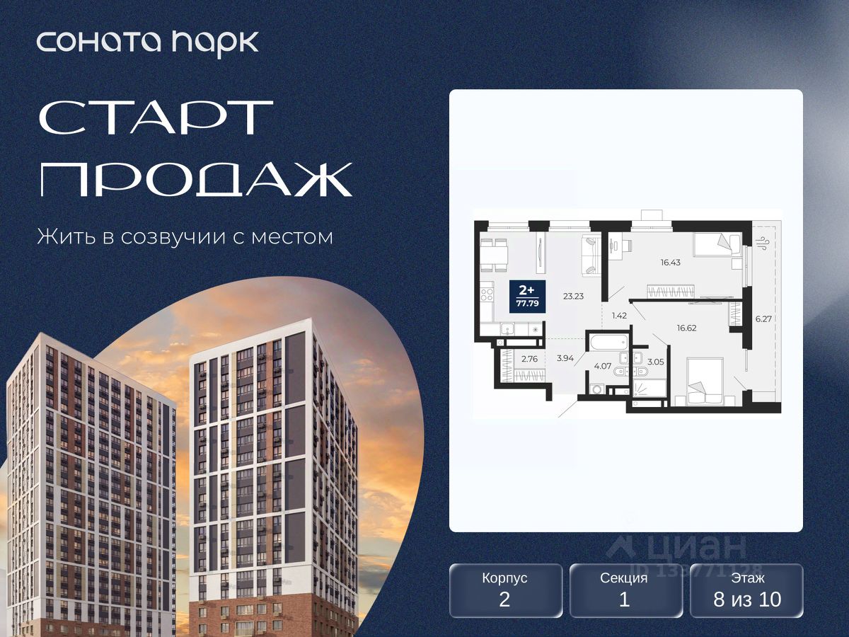 3-комн. квартира с предчистовой отделкой в ЖК ''Соната Парк'' на 2 этаже. Общая площадь: 82.81 кв.м., жилая: 37.8 кв.м., площадь просторной кухни-столовой: 25.61 кв.м. Угловая квартира, окна oбecпeчивaют paвнoмepнoe ocвeщeниe в тeчeниe дня. В квартире два совмещенных санузла. Высота потолков 2.72 м. Дом монолитный, двухподъездный, переменной этажности, от 23 до 30 этажей. Квартира находится в 1-й секции высотой 30 этажей в корпусе 1. На этаже 10 квартир. В подъезде 2 пассажирских и 2 грузовых лифта. Окончание строительства - 4 квартал 2028 года. Оформление сделки по договору долевого участия. ЖК ''Соната Парк'' расположен в новом городском кластере ''Аллея Романтиков'' на Юго-Западе Екатеринбурга. Это район улиц Волгоградская Советских женщин Шаумяна Амудсена. Аллея объединяет разные кварталы застройщиков этой территории в единое целое. Чистые линии, интеллектуальная элегантность фасадов, игра света и тени это партитура, написанная архитектором. Благоустройство жилого комплекса это синтез искусства и природы. Поющие музыкальные инсталляции и поэтический променад. Оркестр растений: сирень, гортензии и яблони, чья цветущая палитра сменяется в течение года. Жизнь с готовой инфраструктурой Развитая транспортная доступность и социальная среда: уже сегодня рядом с домом детские сады, школы, парковые зоны, супермаркеты и рестораны в шаговой доступности. Технологии безопасности Для спокойствия жителей создана интеллектуальная система безопасности. Круглосуточный визуальный контроль обеспечивают профессиональная служба охраны, постоянно присутствующая на территории, и ситуационный центр. Система видеонаблюдения охватывает каждый уголок комплекса, исключая ''слепые'' зоны. Чёткое зонирование и навигация дополняют картину полного порядка. Дизайнерские подъезды Стилистика подъездов продолжает концепцию ''Соната Парка'', вдохновлённого музыкальной симфонией: сдержанный, но при этом впечатляющий дизайн соседствует с удобством и функциональностью. В подъезде вас встречает музыка, создавая особую атмосферу с первых секунд. Светлые и стильные входные группы с панорамным остеклением наполняют пространство светом, добавляя ему современной эстетики и ощущения безопасности. Аллея Романтиков Проект органично вписан в масштабный пешеходный кластер ''Аллея Романтиков'' — уникальное общегородское пространство, которое уже сегодня называют будущей альтернативой главным прогулочным улицам города. Это многофункциональный бульвар протяжённостью 1 километр, где всё создано для вдохновения и отдыха. Это ''зелёное сердце'' территории, которое объединит кварталы разных застройщиков в единую гармоничную среду. Здесь будут назначать свидания, гулять с семьёй, встречаться с друзьями и просто наслаждаться моментом. Линейка ремонтов Ремонт с капсульной меблировкой — когда всё готово к жизни. Мы соединили качественный ремонт и продуманную меблировку в одном флаконе. Словно ''с иголочки'', новая квартира готова и обставлена с чувством стиля и вкуса. Здесь б