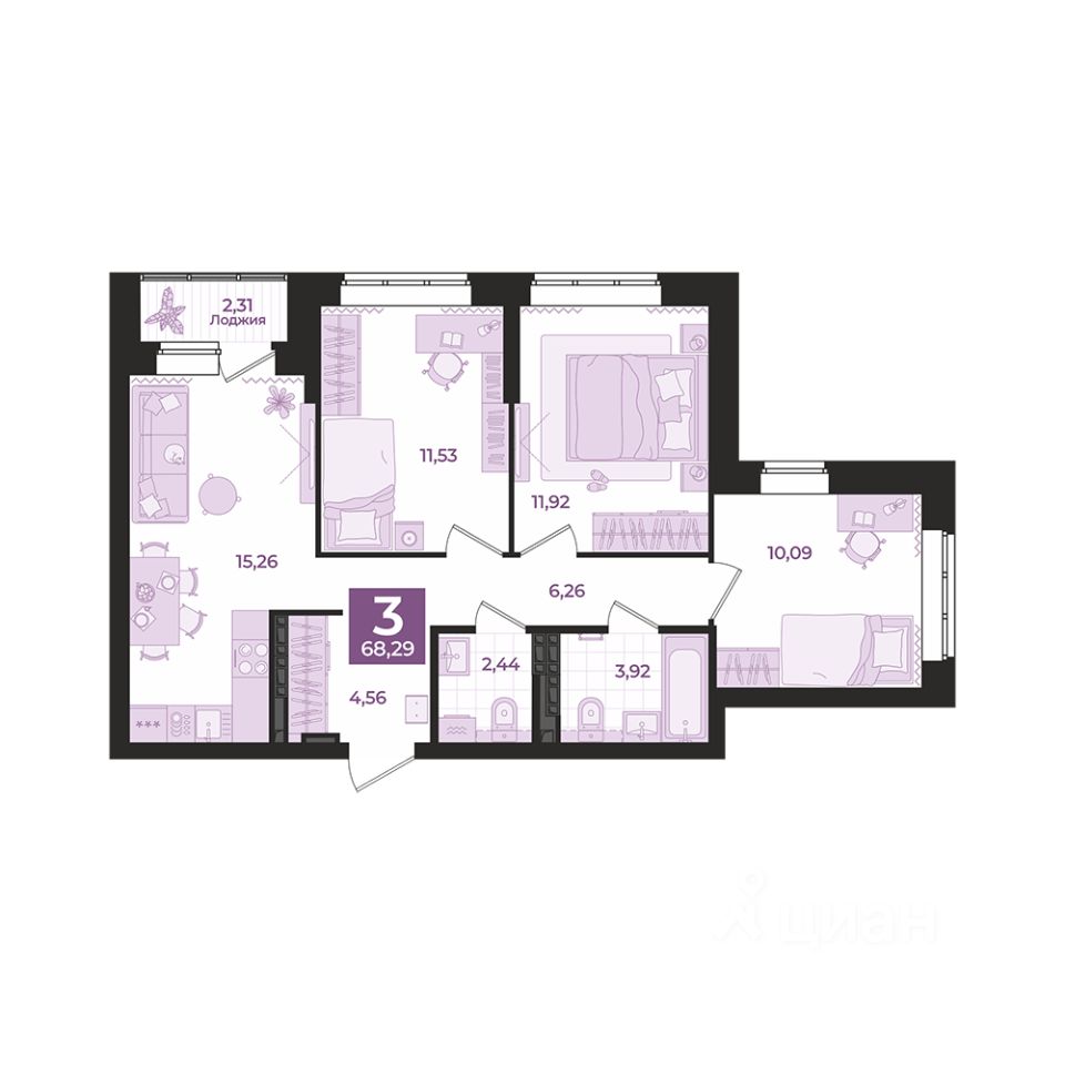 Продается трехкомнатная квартира от застройщика с предчистовой отделкой в ЖК ''Соната Парк'' на 2 этаже. Общая площадь: 85.53 кв.м., жилая: 38.64 кв.м., площадь просторной кухни-столовой: 19.49 кв.м. Квартира угловая, очень светлая, естественная вентиляция при открытии окон. В квартире одна лоджия, два совмещенных санузла. Высота потолков 2.72 м. Дом монолитный, двухподъездный, переменной этажности, от 23 до 30 этажей. Квартира находится во 2-й секции высотой 23 этажа в корпусе 1. На этаже 11 квартир. В подъезде 1 пассажирский и 2 грузовых лифта. Окончание строительства - 4 квартал 2028 года. Оформление сделки по договору долевого участия. ЖК ''Соната Парк'' расположен в новом городском кластере ''Аллея Романтиков'' на Юго-Западе Екатеринбурга. Это район улиц Волгоградская Советских женщин Шаумяна Амудсена. Аллея объединяет разные кварталы застройщиков этой территории в единое целое. Чистые линии, интеллектуальная элегантность фасадов, игра света и тени это партитура, написанная архитектором. Благоустройство жилого комплекса это синтез искусства и природы. Поющие музыкальные инсталляции и поэтический променад. Оркестр растений: сирень, гортензии и яблони, чья цветущая палитра сменяется в течение года. Жизнь с готовой инфраструктурой Развитая транспортная доступность и социальная среда: уже сегодня рядом с домом детские сады, школы, парковые зоны, супермаркеты и рестораны в шаговой доступности. Технологии безопасности Для спокойствия жителей создана интеллектуальная система безопасности. Круглосуточный визуальный контроль обеспечивают профессиональная служба охраны, постоянно присутствующая на территории, и ситуационный центр. Система видеонаблюдения охватывает каждый уголок комплекса, исключая ''слепые'' зоны. Чёткое зонирование и навигация дополняют картину полного порядка. Дизайнерские подъезды Стилистика подъездов продолжает концепцию ''Соната Парка'', вдохновлённого музыкальной симфонией: сдержанный, но при этом впечатляющий дизайн соседствует с удобством и функциональностью. В подъезде вас встречает музыка, создавая особую атмосферу с первых секунд. Светлые и стильные входные группы с панорамным остеклением наполняют пространство светом, добавляя ему современной эстетики и ощущения безопасности. Аллея Романтиков Проект органично вписан в масштабный пешеходный кластер ''Аллея Романтиков'' — уникальное общегородское пространство, которое уже сегодня называют будущей альтернативой главным прогулочным улицам города. Это многофункциональный бульвар протяжённостью 1 километр, где всё создано для вдохновения и отдыха. Это ''зелёное сердце'' территории, которое объединит кварталы разных застройщиков в единую гармоничную среду. Здесь будут назначать свидания, гулять с семьёй, встречаться с друзьями и просто наслаждаться моментом. Линейка ремонтов Ремонт с капсульной меблировкой — когда всё готово к жизни. Мы соединили качественный ремонт и продуманную меблировку в одном флаконе. Словно ''с иголочки'', новая квартира готов