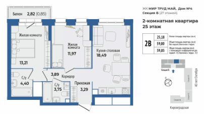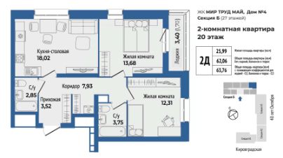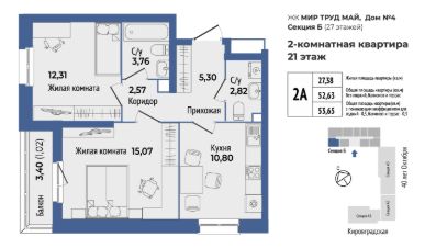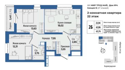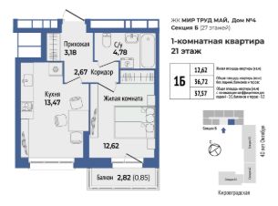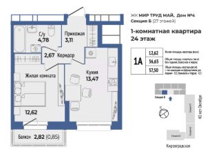 Продается 1 к квартира 184 в жилом комплексе МирТрудМай 4Б
