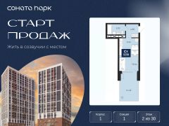 Успейте оформить бронирование на этих условиях, срок акции ограничен! Стоимость квартиры указана со скидкой, ваша экономия составит 446,915 руб. Информация по телефону, мы вам все подробно расскажем. Просторная 1-комн. квартира-студия в ЖК ''Соната Парк'' на 17 этаже. Общая площадь: 30.99 кв.м. Высота потолков 2.72 м. Дом монолитный, двухподъездный, переменной этажности, от 23 до 30 этажей. Квартира находится во 2-й секции высотой 23 этажа в корпусе 1. На этаже 11 квартир. В подъезде 1 пассажирский и 2 грузовых лифта. Окончание строительства - 4 квартал 2028 года. Оформление сделки по договору долевого участия. ЖК ''Соната Парк'' расположен в новом городском кластере ''Аллея Романтиков'' на Юго-Западе Екатеринбурга. Это район улиц Волгоградская Советских женщин Шаумяна Амудсена. Аллея объединяет разные кварталы застройщиков этой территории в единое целое. Чистые линии, интеллектуальная элегантность фасадов, игра света и тени это партитура, написанная архитектором. Благоустройство жилого комплекса это синтез искусства и природы. Поющие музыкальные инсталляции и поэтический променад. Оркестр растений: сирень, гортензии и яблони, чья цветущая палитра сменяется в течение года. Жизнь с готовой инфраструктурой Развитая транспортная доступность и социальная среда: уже сегодня рядом с домом детские сады, школы, парковые зоны, супермаркеты и рестораны в шаговой доступности. Технологии безопасности Для спокойствия жителей создана интеллектуальная система безопасности. Круглосуточный визуальный контроль обеспечивают профессиональная служба охраны, постоянно присутствующая на территории, и ситуационный центр. Система видеонаблюдения охватывает каждый уголок комплекса, исключая ''слепые'' зоны. Чёткое зонирование и навигация дополняют картину полного порядка. Дизайнерские подъезды Стилистика подъездов продолжает концепцию ''Соната Парка'', вдохновлённого музыкальной симфонией: сдержанный, но при этом впечатляющий дизайн соседствует с удобством и функциональностью. В подъезде вас встречает музыка, создавая особую атмосферу с первых секунд. Светлые и стильные входные группы с панорамным остеклением наполняют пространство светом, добавляя ему современной эстетики и ощущения безопасности. Аллея Романтиков Проект органично вписан в масштабный пешеходный кластер ''Аллея Романтиков'' — уникальное общегородское пространство, которое уже сегодня называют будущей альтернативой главным прогулочным улицам города. Это многофункциональный бульвар протяжённостью 1 километр, где всё создано для вдохновения и отдыха. Это ''зелёное сердце'' территории, которое объединит кварталы разных застройщиков в единую гармоничную среду. Здесь будут назначать свидания, гулять с семьёй, встречаться с друзьями и просто наслаждаться моментом. Линейка ремонтов Ремонт с капсульной меблировкой — когда всё готово к жизни. Мы соединили качественный ремонт и продуманную меблировку в одном флаконе. Словно ''с иголочки'', новая квартира готова и обставлена с чувством