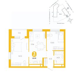 Спешите забронировать, пока действует скидка! Предложение ограничено! Стоимость квартиры указана со скидкой, ваша экономия составит 340,000 RUB. Информация по телефону, наши менеджеры вам все расскажут! Однокомнатная квартира от застройщика с предчистовой отделкой в ЖК ''Квартал Траектория'' на 6 этаже. Общая площадь: 56.4 кв.м., жилая: 14.7 кв.м., площадь просторной кухни-столовой: 27.5 кв.м. Квартира угловая, идеально подойдет любителям тишины и панорамных видов. В квартире один балкон, один совмещенный санузел. Высота потолков 2.82 м. Дом монолитный, многоподъездный, переменной этажности, от 7 до 16 этажей. Квартира находится в 1-й секции высотой 16 этажей в корпусе 1-2. На этаже 6 квартир. В подъезде 1 пассажирский и 1 грузовой лифт. Начало строительства - 4 квартал 2025 года. Окончание строительства - 4 квартал 2027 года. Оформление сделки по договору долевого участия. Квартира с кухней-гостиной и одной спальней в квартале ''Траектория''. Особенности планировки: балкон, предчистовая отделка, стартовая цена. квартиры в нашей базе: МНВ01-Ж9.6.5. Квартал ''Траектория'' строится в границах улиц Билимбаевской, Расточной, Монтажников и МаневровойРаньше здесь находился оборонный завод 5-ЦАРЗ, основанный в 1945 году. После войны он ремонтировал военную и грузовую технику — от ''Виллисов'' и ''Студебекеров'' до советских ЗИС-5 и ГАЗ-67. Сортировка — район с развитой инфраструктурой, обжитыми жилыми кварталами разных эпох и большим количеством парков. До центра Екатеринбурга — 20 минут на машине. Туда же можно отправиться на автобусе: ближайшая остановка общественного транспорта — в 4 минутах от ''Траектории''.Рядом с ''Траекторией'' расположены магазины, торговый центр, детские сады, школы, поликлиники и полезные сервисы, а также другой проект Брусники — квартал ''Депо''. Если хочется развлечений, можно отправиться в ТРЦ ''Карнавал'' и парк с аттракционами ''Таганская слобода'' — дорога туда займёт не более 10 минут на машине. Квартал ''Траектория'' — первый этап комплексного развития территории, которую раньше занимали производственные здания. На месте бывших цехов Брусника создаст дружелюбную среду и комфортное пешеходное пространство для всего района. Для озеленения квартала мы подобрали больше 60 видов растений: ольху, липу, клён, иву, грушу, вишню, сирень, барбарис, гортензию, смородину, ирис, декоративные травы. Они цветут в разное время года и постоянно меняют настроение двора. В ''Траектории'' мы предусмотрели несколько общественных пространств, открытых для всех горожан: встречающий сквер, лесопарк у храма и событийный сквер между домами. Когда захочется тишины и уединения, можно устроить прогулку во внутренних дворах: в них нет машин и посторонних, зато много зелени, света и мест для отдыха. Каждый двор в квартале ''Траектория'' — продолжение квартиры, только под открытым небом. Здесь можно прогуляться босиком по траве, устроить утреннюю йогу, почитать книгу в гамаке или отправить детей поиграть, не переживая за их безопасность. Мы зак