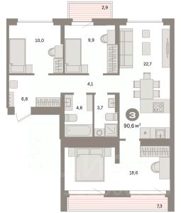 Просторная двухкомнатная квартира с предчистовой отделкой в ЖК ''Квартал Траектория'' на 3 этаже. Общая площадь: 86.7 кв.м., жилая: 29.4 кв.м., площадь просторной кухни-столовой: 29.9 кв.м. Комнаты изолированные, все окна выходят на одну сторону. В квартире один балкон и одна лоджия, два совмещенных санузла. Высота потолков 2.82 м. Дом монолитный, многоподъездный, переменной этажности, от 7 до 16 этажей. Квартира находится в 4-й секции высотой 16 этажей в корпусе 1-2. На этаже 7 квартир. В подъезде 1 пассажирский и 1 грузовой лифт. Начало строительства - 4 квартал 2025 года. Окончание строительства - 4 квартал 2027 года. Оформление сделки по договору долевого участия. Квартира с кухней-гостиной и двумя спальнями в квартале ''Траектория''. Особенности планировки: балкон, предчистовая отделка, разнесённые спальни, стартовая цена. квартиры в нашей базе: МНВ01-Ж12.3.1. Квартал ''Траектория'' строится в границах улиц Билимбаевской, Расточной, Монтажников и МаневровойРаньше здесь находился оборонный завод 5-ЦАРЗ, основанный в 1945 году. После войны он ремонтировал военную и грузовую технику — от ''Виллисов'' и ''Студебекеров'' до советских ЗИС-5 и ГАЗ-67. Сортировка — район с развитой инфраструктурой, обжитыми жилыми кварталами разных эпох и большим количеством парков. До центра Екатеринбурга — 20 минут на машине. Туда же можно отправиться на автобусе: ближайшая остановка общественного транспорта — в 4 минутах от ''Траектории''.Рядом с ''Траекторией'' расположены магазины, торговый центр, детские сады, школы, поликлиники и полезные сервисы, а также другой проект Брусники — квартал ''Депо''. Если хочется развлечений, можно отправиться в ТРЦ ''Карнавал'' и парк с аттракционами ''Таганская слобода'' — дорога туда займёт не более 10 минут на машине. Квартал ''Траектория'' — первый этап комплексного развития территории, которую раньше занимали производственные здания. На месте бывших цехов Брусника создаст дружелюбную среду и комфортное пешеходное пространство для всего района. Для озеленения квартала мы подобрали больше 60 видов растений: ольху, липу, клён, иву, грушу, вишню, сирень, барбарис, гортензию, смородину, ирис, декоративные травы. Они цветут в разное время года и постоянно меняют настроение двора. В ''Траектории'' мы предусмотрели несколько общественных пространств, открытых для всех горожан: встречающий сквер, лесопарк у храма и событийный сквер между домами. Когда захочется тишины и уединения, можно устроить прогулку во внутренних дворах: в них нет машин и посторонних, зато много зелени, света и мест для отдыха. Каждый двор в квартале ''Траектория'' — продолжение квартиры, только под открытым небом. Здесь можно прогуляться босиком по траве, устроить утреннюю йогу, почитать книгу в гамаке или отправить детей поиграть, не переживая за их безопасность. Мы закроем дворы от машин, чтобы создать безопасную среду для отдыха. Применим натуральные материалы в отделке малых архитектурных форм — дерево, камень, металл без лишней обработки. Внутри каждог