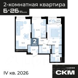 Ввод в эксплуатацию: вторая половина 2025 годаКласс дома: комфорт.Отделка: чистовая.Вид из окон: на центр города и озеро Шарташ.Б.26 дом на высоте современный жилой комплекс в районе Втузгородок (пересечении улиц Блюхера и Мира).До центра города 20 минут ходьбы.В шаговой доступности находятся:ВУЗы (Уральский федеральный университет, Юридическая академия)Дендрологический парк.школы (Гимназии 35, 47, 108, Лицей 130)детские сады ( 421, 423, 332, 352)остановки общественного транспорта (ул. Мира, ул. Блюхера, ТК Современник).торговые центры (Апельсин, Современник, Галерея 11, Blissco молл)Современная архитектура. Долговечные фасады из навесных панелей и штукатурки, увеличенные окна и французские балконы формируют уникальный узнаваемый образ. Ночная подсветка выделяет дом среди застройки района и подчеркивает выразительность его силуэта.Двор без машин. Игровые площадки для детей разных возрастов, места отдыха и занятий спортом для взрослых не соседствуют с парковкой.Динопарк. Игровые зоны созданы в стиле таинственного мира динозавров.Парк во дворе. Многоуровневое озеленение c прогулочными дорожками, беседками и качелями.Три уровня безопасности. Контроль доступа по карте жителя, эффективная система видеонаблюдения, консьерж-сервис.Дизайнерские холлы. Парадный холл с остеклением в пол, зонами ожидания, гостевым санузлом и санузлом для мытья лап животным, а также колес велосипедов и колясок.Сервисная компания от застройщика. Обслуживанием дома будет заниматься профессиональная команда.Строительные и технические преимущества.Индивидуальный тепловой пункт: снижает затраты на отопление.Система очистки улучшит качество воды в доме.Пятикамерные окна задержат шумы и холод.Клапан вентиляции позволит проветрить комнату, не устраивая сквозняк.Горизонтальная разводка отопления: трубы спрятаны в полу.Счетчики с телеметрией. Отдельный счетчик на отопление у каждой квартиры.Отведение конденсата для кондиционеров.Высокий уровень шумоизоляции у стены квартир.Бесшумные, скоростные лифты.