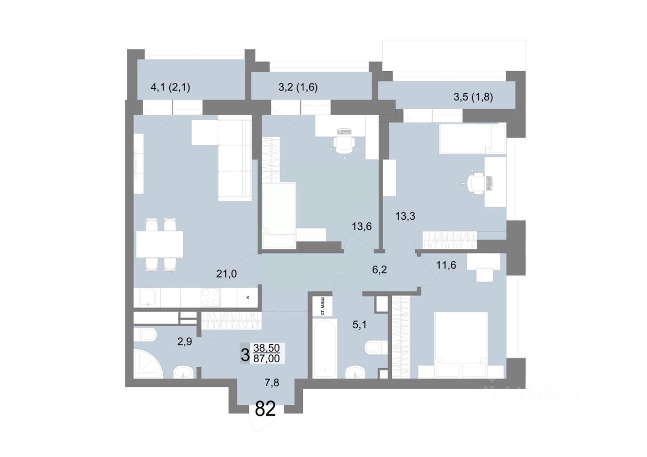 87 м² · Этаж 14 из 25