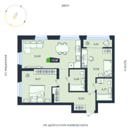 Продаётся 3-комнатная квартира в строящемся доме (Дом 8 (17А-17В)), срок сдачи: III кв. 2027, общей площадью 73.18 кв.м., на 5 этаже. В жилом квартале есть собственный выход в ЦПКиО им. Маяковского для утренних пробежек и отдыха всей семьёй. В территорию квартала интегрирована река Исеть с обустроенной набережной. Здесь вы сможете гулять с детьми и наслаждаться видами летними вечерами.
