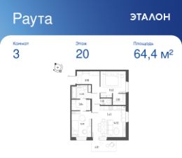 Продается 3-к квартира отделка White Box в ЖК ''Раута''.Общая площадь квартиры — 64.4 кв. м, этаж 20 из 22.Тип дома — монолитный.Цена указана при 100% оплате.