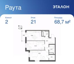 Продается 2-к квартира отделка White Box в ЖК ''Раута''.Общая площадь квартиры — 68.7 кв. м, этаж 21 из 25.Тип дома — монолитный.Цена указана при 100% оплате.